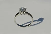 Při velikosti prstenu 55 mm váha 2,6g. Ryzost zlata 14 kt 585/1000. Kvalita diamantu SI 1/G. Kvalita LG diamantu VS/E.