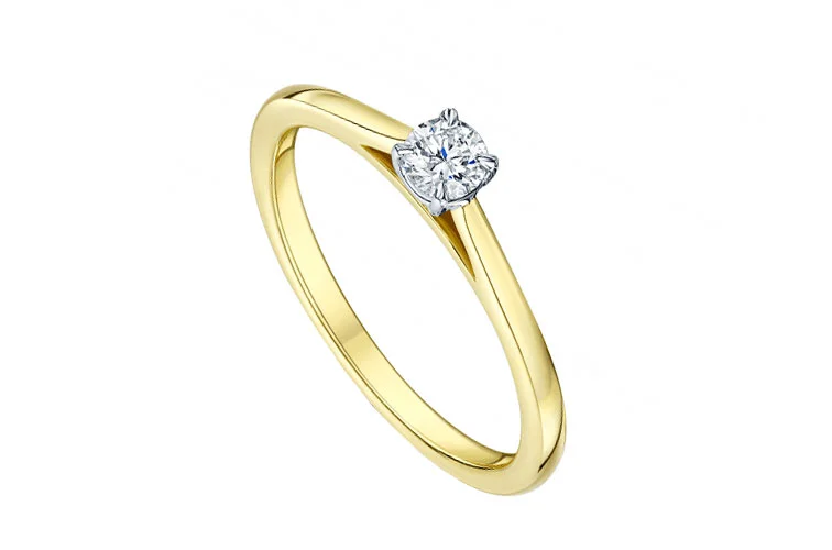 Oslnivý zlatý zásnubní prsten avignon s krásným 3 mm kamenem.
